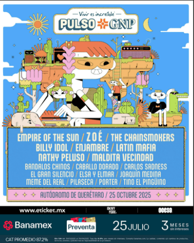 El Pulso GNP ha confirmado su sexta edición para el sábado 25 de octubre de 2025, en el Autódromo de Querétaro. Se espera que el evento arranque por la tarde y se extienda hasta entrada la noche, con múltiples escenarios en los que se alternarán artistas de géneros diversos. En la venta de boletos se manejan distintas fases, incluyendo preventas exclusivas para fans y precios escalonados.